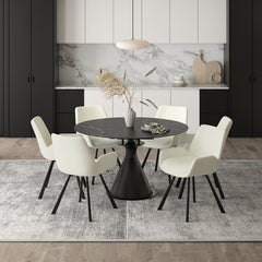 - Sintered stone table top is waterproof, heat-resistant, stain-resistant, and scratch-resistant for worry-free dining