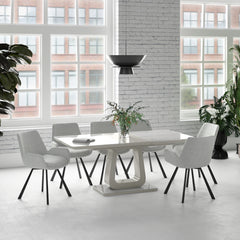 Transform your dining space with the sleek and versatile Raven/Harmony Seven-Piece Dining Set. This contemporary ensemble combines style and functionality, making it the perfect addition to any modern home.