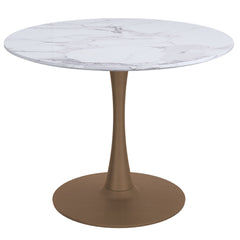 Elevate your dining space with the Zircon 40" Round Pedestal Dining Table, a perfect blend of contemporary style and functionality. This stunning pedestal table features a 1-inch thick, reverse-beveled tabletop crafted from engineered wood with a laminated veneer in a luxurious faux marble finish, exuding elegance and durability.